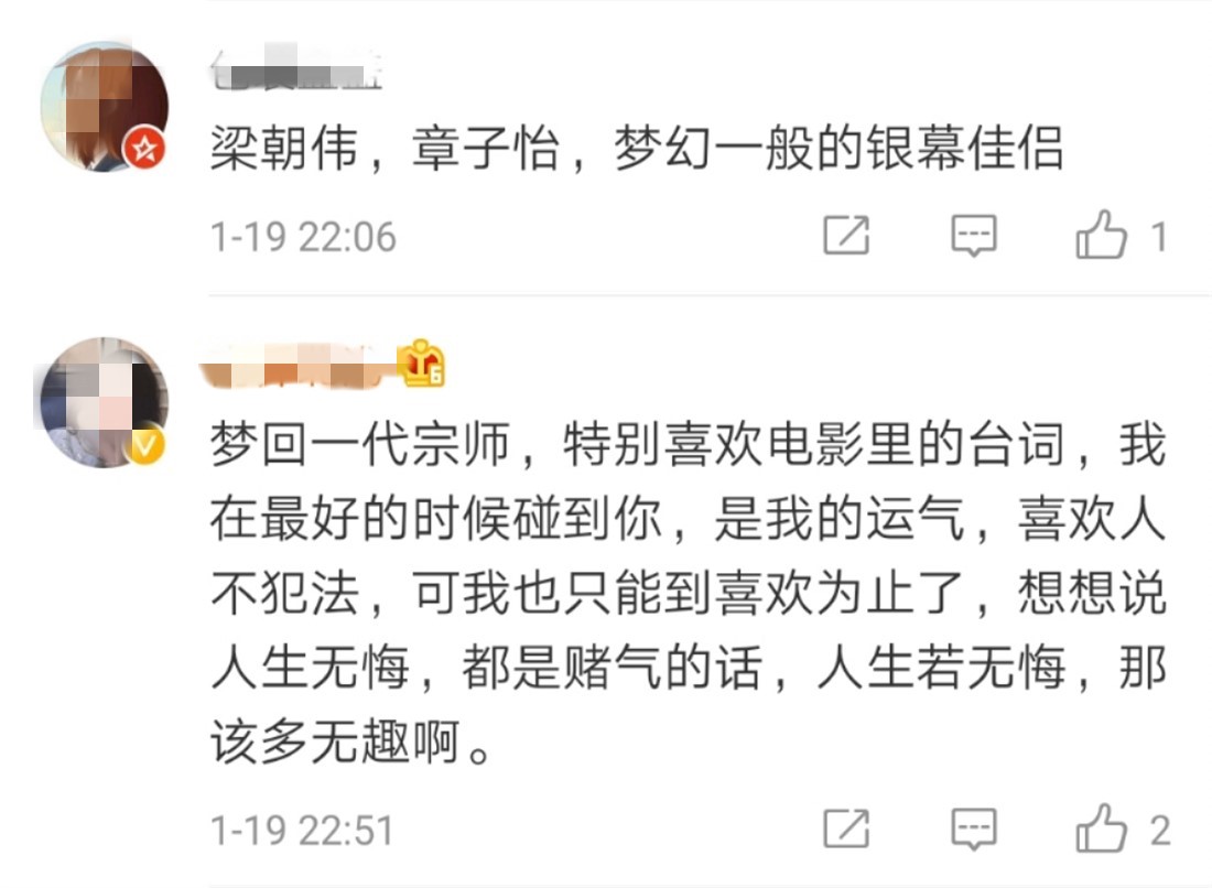 面对此画面,不少网友表示两人同框真是久违,简直梦回到了一代宗师,还有的网友觉得梁朝伟和章子怡真的是梦幻一般的荧幕情侣。
